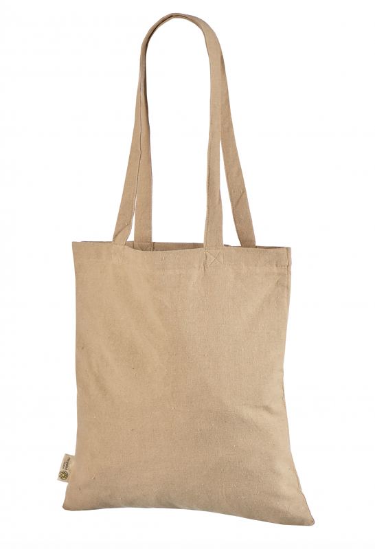 Meie poolt pakutav ümbertöödeldud puuvillast kott on bee¾i värvi ja valmistatud 150 gr. kangast.