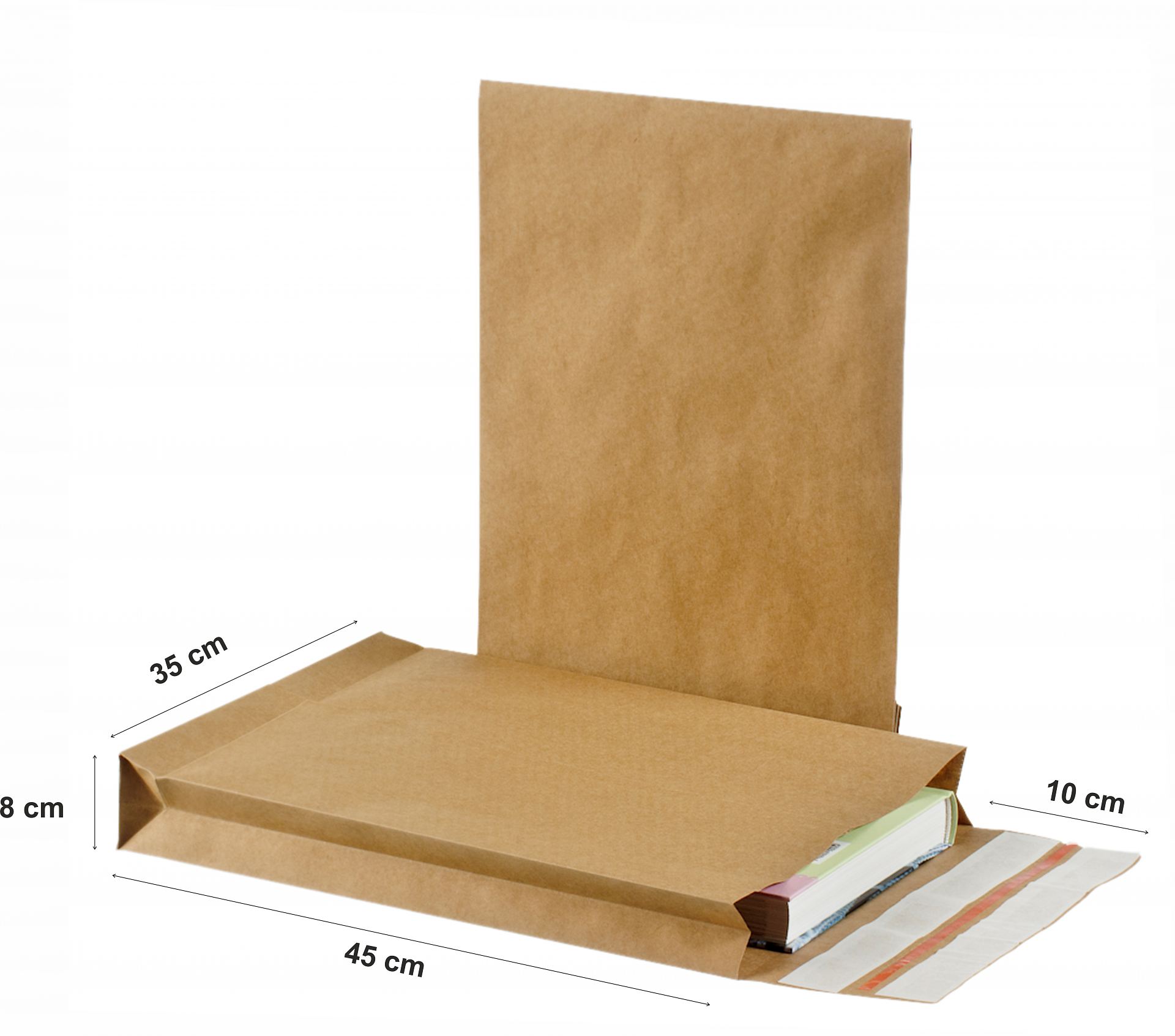 Suurus 45x35x8+ 10 cm kõrgus x laius x sügavus + klapp ( cm) Materjal FSC 120 g pruun kraft