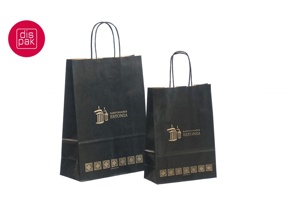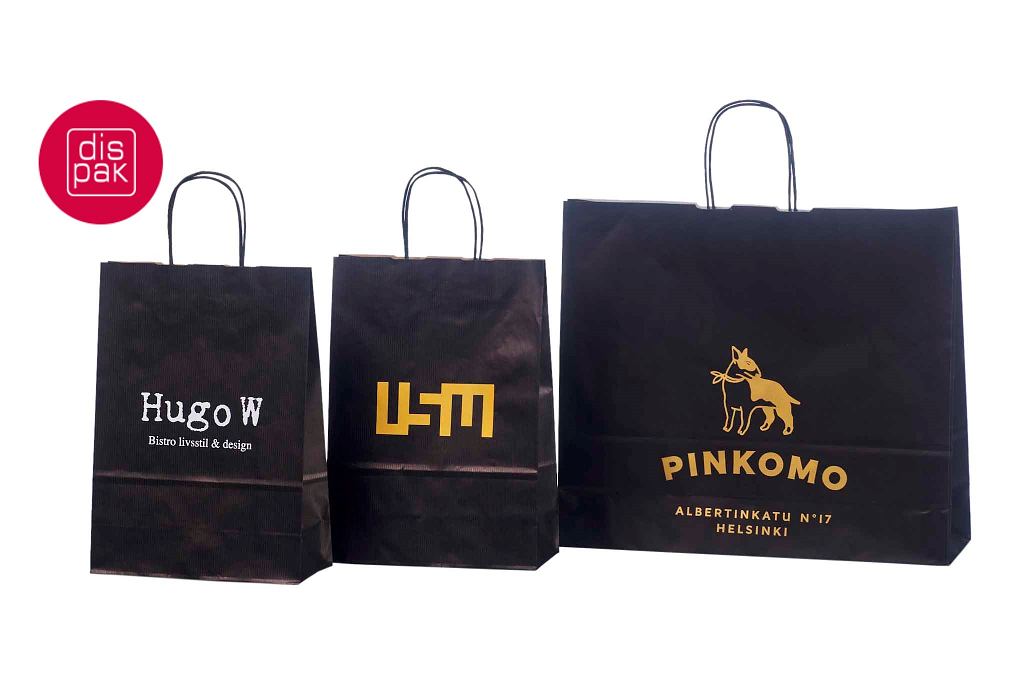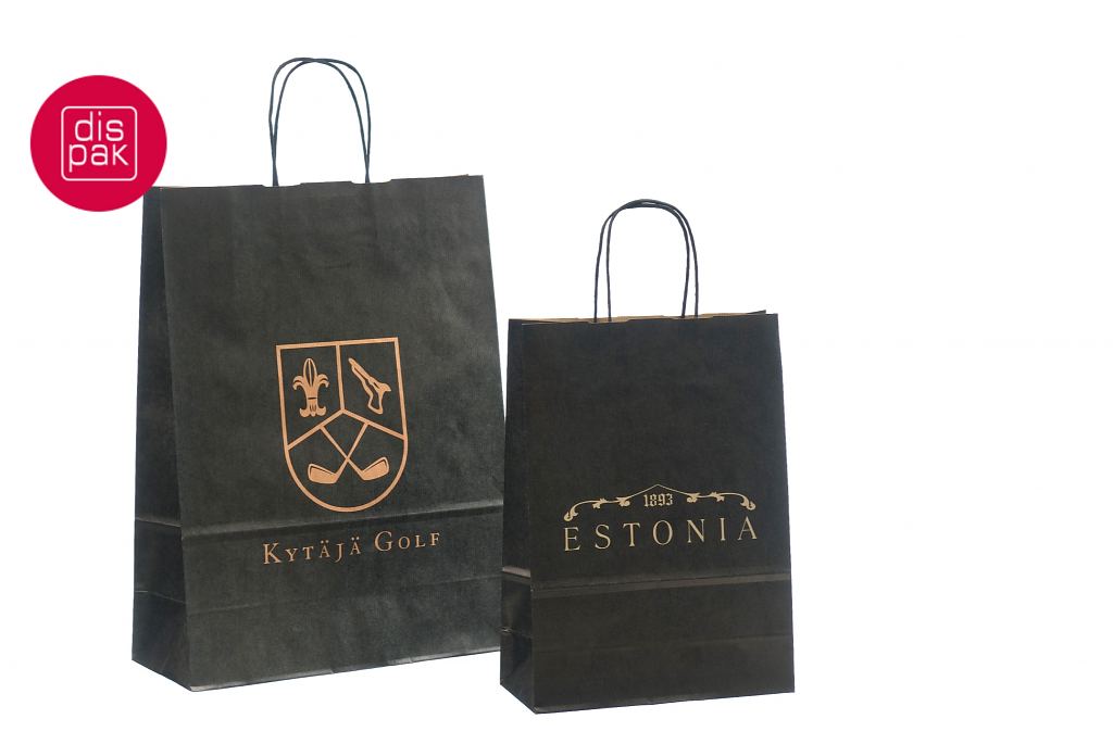 must paberkott | Fotogalerii- mustad paberkotid, millele trükitud klientide logod.