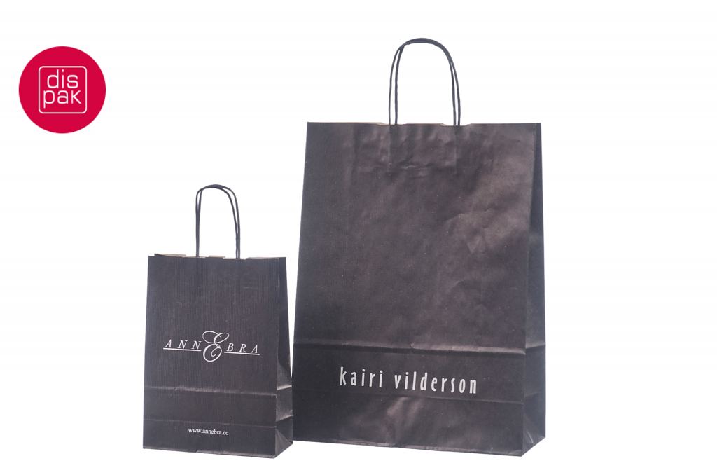 Mustadele paberkottidele on võimalik peale trükkida 1 kuni 4 värvi. Kottidele trükime logo enamjaolt siiditrükis ja 1 värviga. Miinimum kogus trükiga kottidele algab 50 tükist.