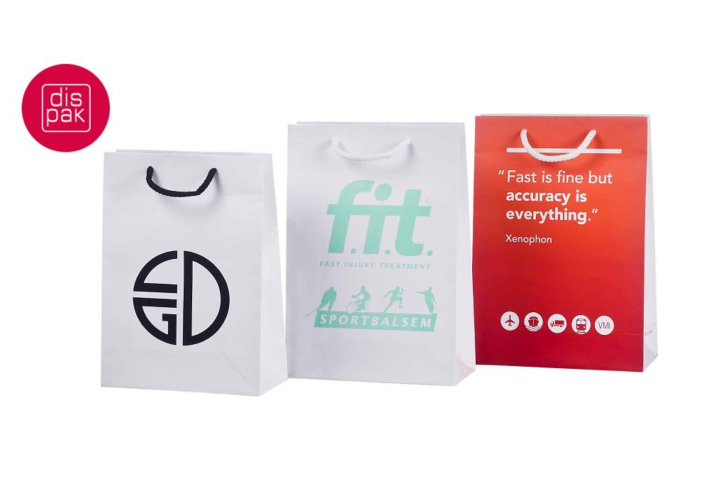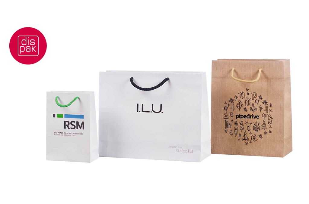Ülevaade erinavetst trükiga paber- ja riidekottidest.