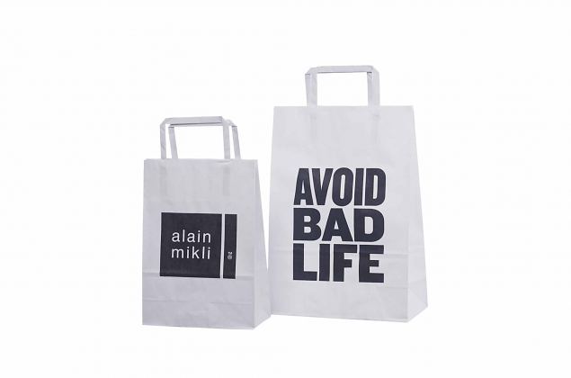 Galleri af værker-hvide papirsposer med flad hank