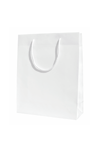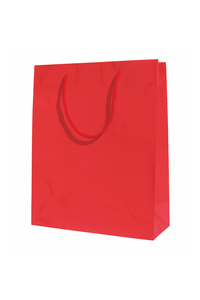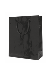 White gift bags Black gift bags Blue gift bags Red gift bags Paper bags are made of 160 gsm coated paper. The glossy laminate provides the paper with necessary strength and makes the gift bag look more formal.