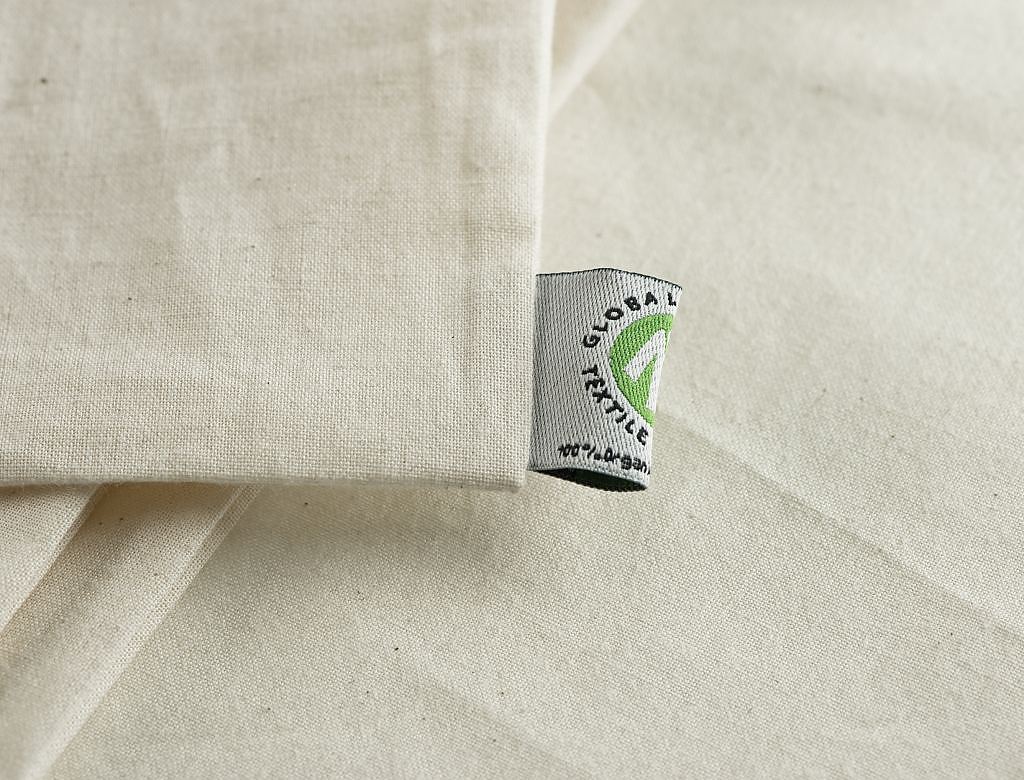 Som du kan se av bildet, er alle posene utstyrt med en liten lapp, som sertifiserer at det kun er sol, vann og økologisk gjødsel som har blitt brukt for å dyrke fram bomullen. |