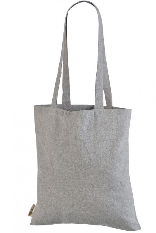 Meie poolt pakutav ümbertöödeldud puuvillast kott on halli värvi ja valmistatud 150 gr. kangast.