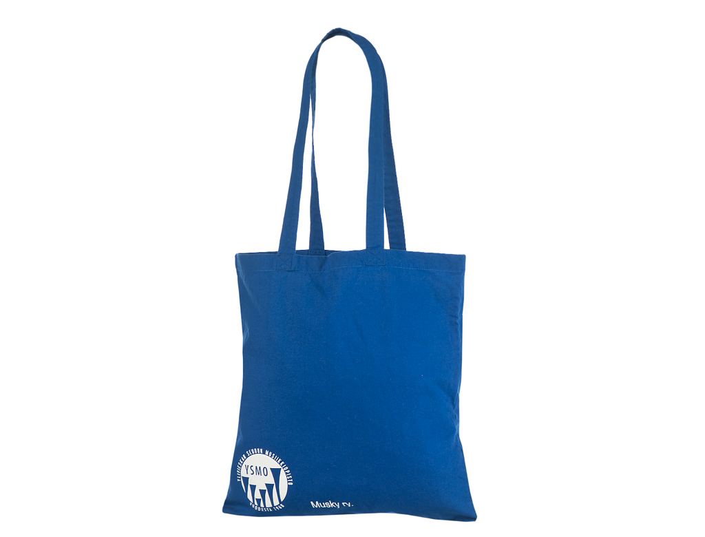 Kestävä ja vahva sininen puuvillakassi.Minimitilausmäärä omalla painatuksella on 50 kappaletta. Ku