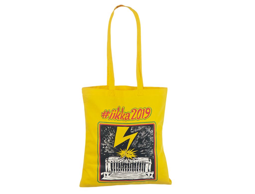 Fotogalerii- kollast värvi riidest kott trükiga Kollast värvi riidest kott personaalse logoga . T
