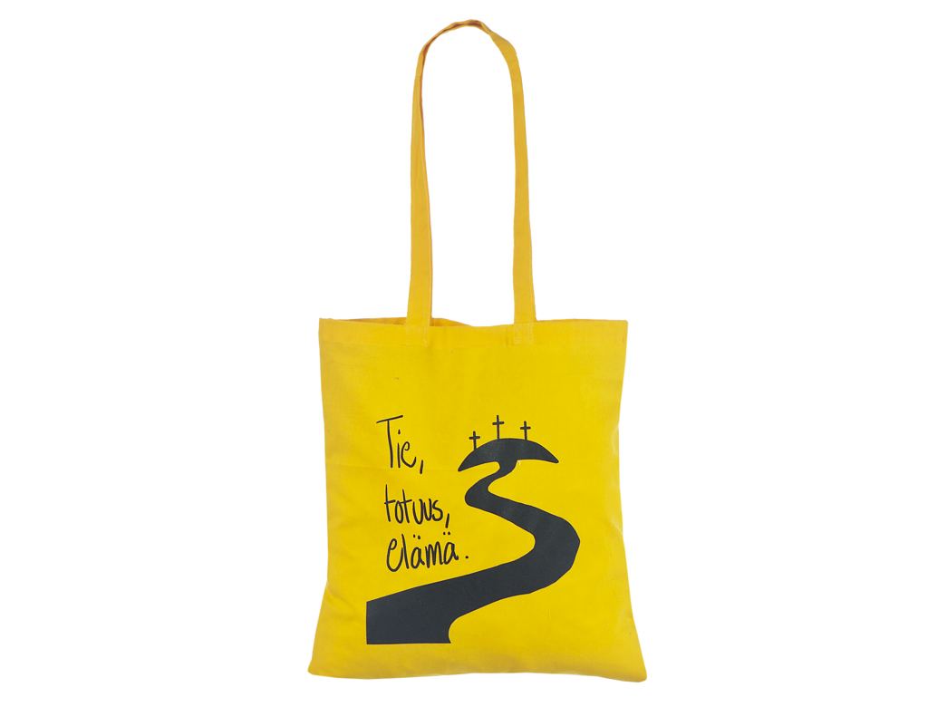 Logoga kollast värvi riidest kott . Trükiga kottidele miinimum kogus alates 50 kotist. Helista me