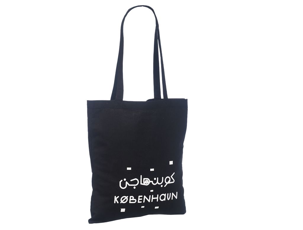 Referenssit-edullinen musta kangaskassi painatuksella Mustat kangaskassit. Ilmainen kuljetus Suom