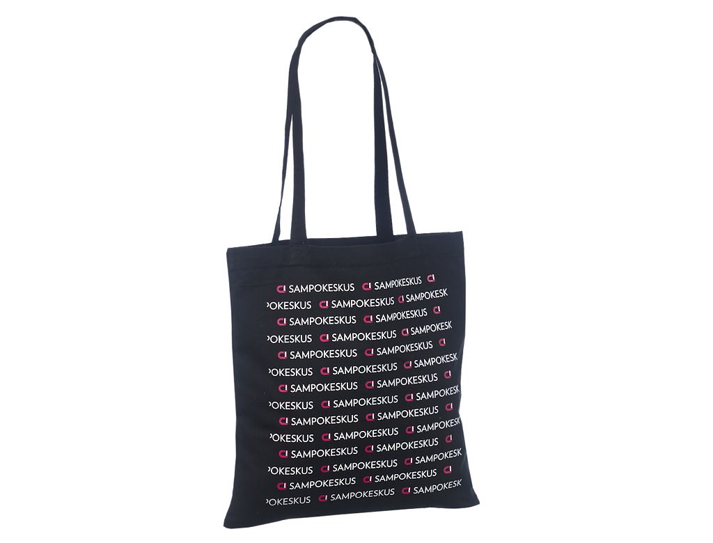 Vahvat, korkealaatuiset mustat kangaskassit. Minimitilausmäärä omalla painatuksella on 50 kappaletta. Valittavana useita eri kokoja.