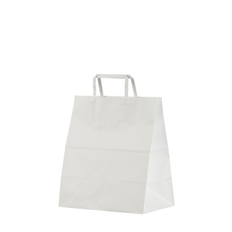 Valge take away kott on valmistatud tugevast 90 gr/ m2 valgest kraftpaberist.