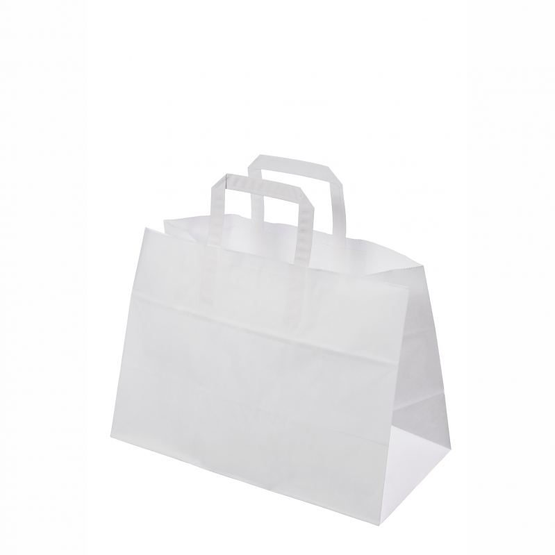 Valge take away kott on valmistatud tugevast 80 gr/ m2 valgest kraftpaberist.