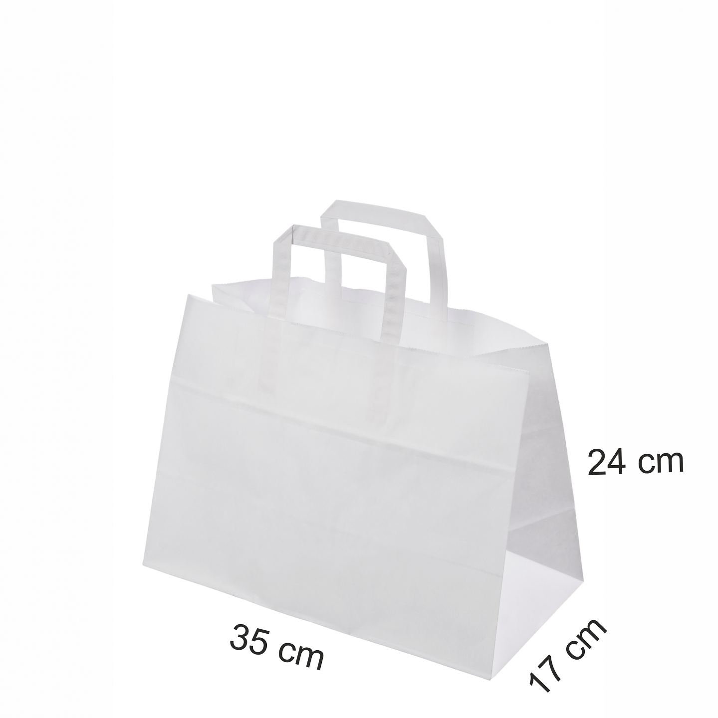 Valkoinen take away -paperikassi valmistetaan 80 gsm/m2 vahvasta kraft-paperista