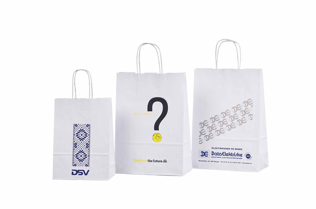 • Spesialtilpassede papirposer med trykk fra 50-100 stk.