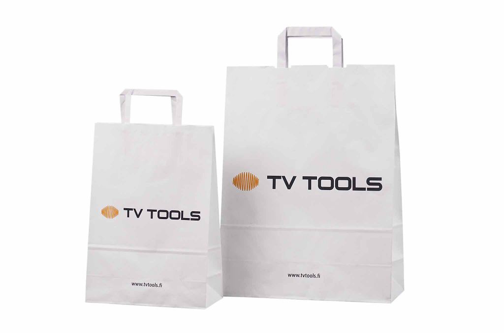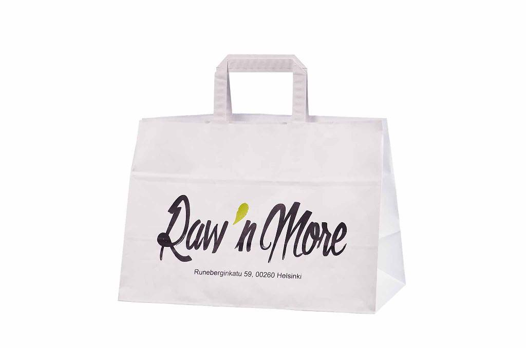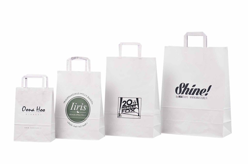 white paper bag with print | Galleri-White Paper Bags with Flat Handles